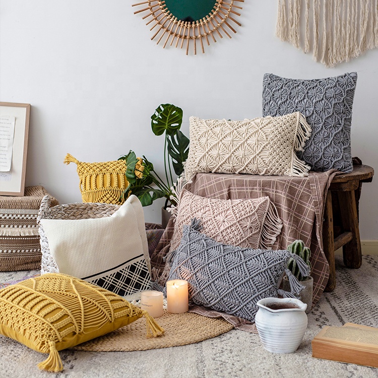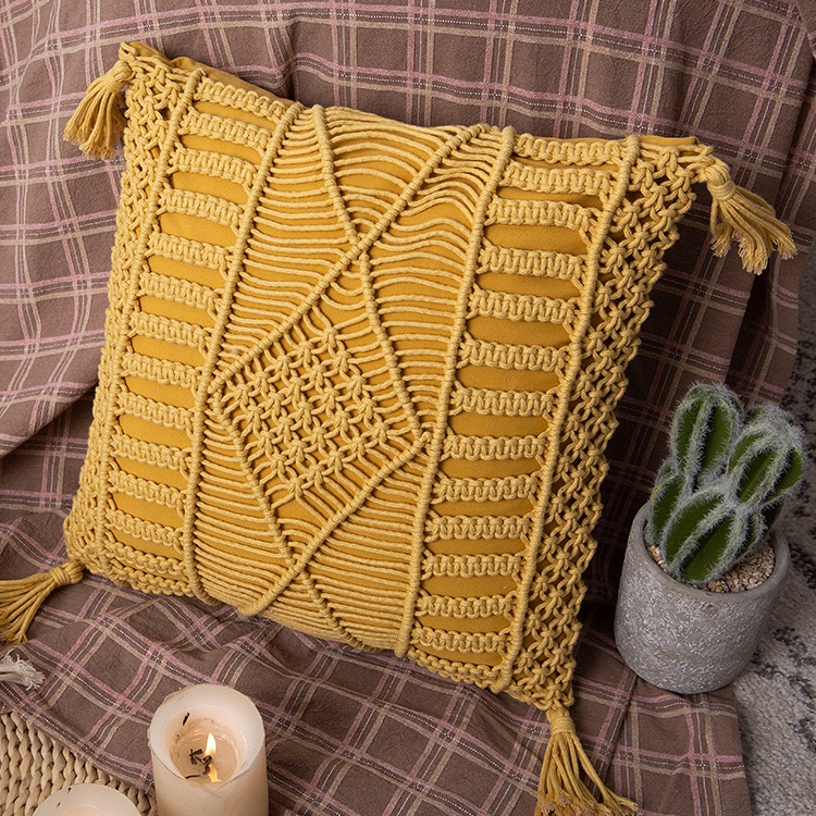 Dekoratiivpadi Makramee kollane 45×45